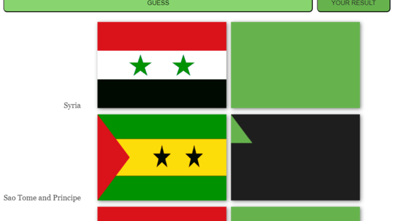 A daily guessing game where players aim to guess the flag of a mystery country. Every guess reveals whether the target flag shares the colors on the guessed flag, in the same position as the guessed flag. Players can share results with friends, as well as play an unlimited mode.