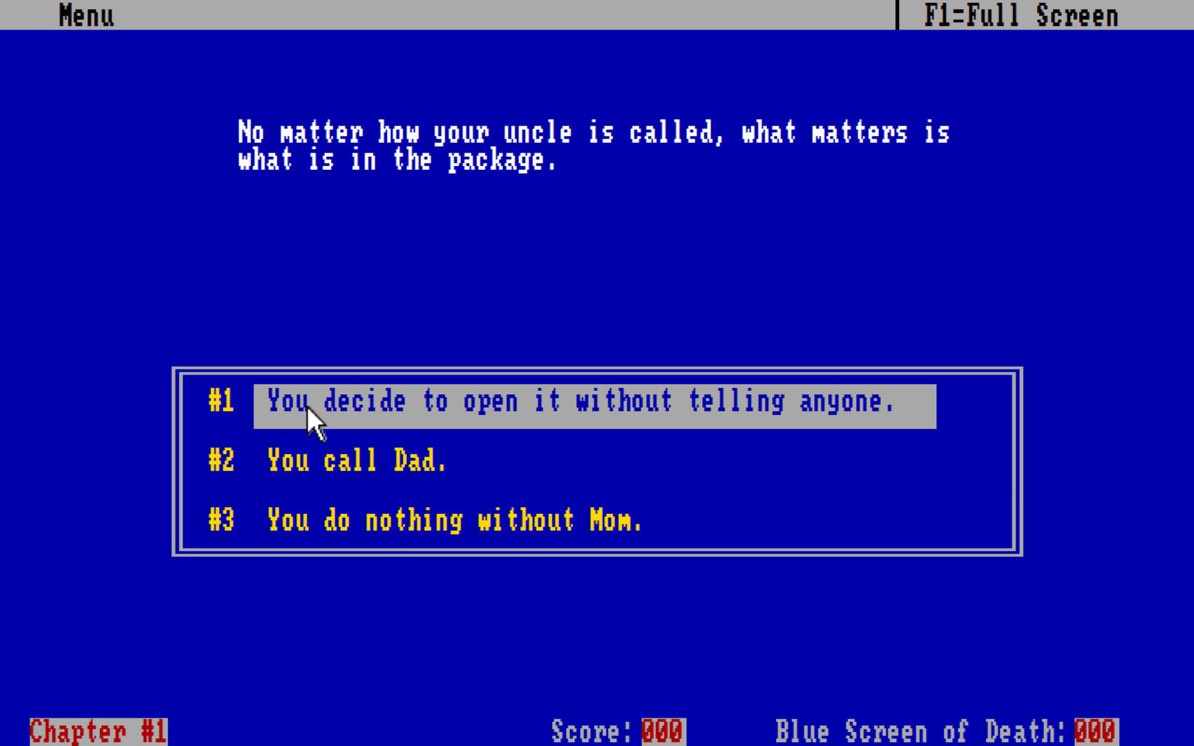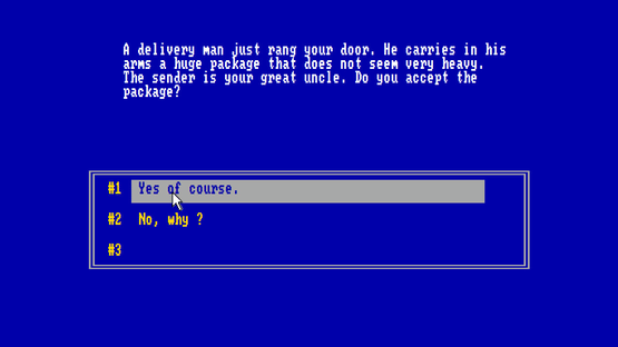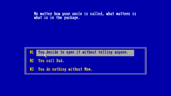 BSA is a text adventure game. You will play the nephew or niece of one of the three greatest genius of computer developement from the years 1970/1980.