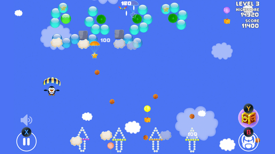 Very dynamic bubble pop / brick out arcade game with many different types of blocks, enemies, and power-ups. Play as a cool penguin that jumps out of the plane and smashes his enemies with basketballs, fire balls, acid balls, explosive balls, and boomerangs.