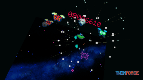 Blast your way through hordes of alien enemies in this revisited version of arcade classic shooters. Pilot your spaceship in a two-layered battleground and aim for highscore. TwinForce gameplay is optimized for Virtual Reality and 3D displays, although playable on regular screens.