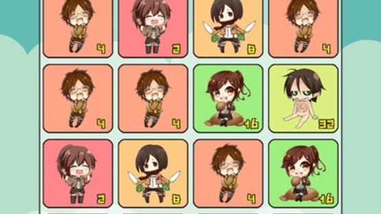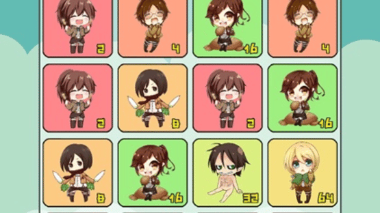 A 2048 clone based on the anime and manga "Attack on Titan" released on iOS devices. The game features 4x4, 5x5 and 6x6 boards.