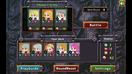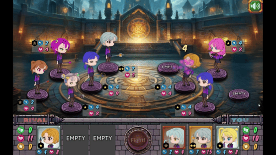 Collect characters with unique skills and win the arena! Find the optimal formation from three characters randomly selected for each round.