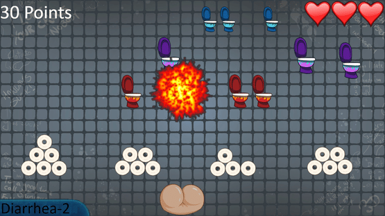 Pooshooter: Toilet Invaders is a 2D action comedy game packed with explosions and fun gameplay. Reminiscent of arcade classics like Space Invaders, PooShooter lets you take control of a Bum fighting against vengeful Toilets. PooShooter: Toilet Invaders offers tons of levels which increase in difficulty, where you can blast more and more Toilets while dodging their projectile Plungers. There are also bonus Golden Toilets that occasionally fly across the top of the screen for extra points.