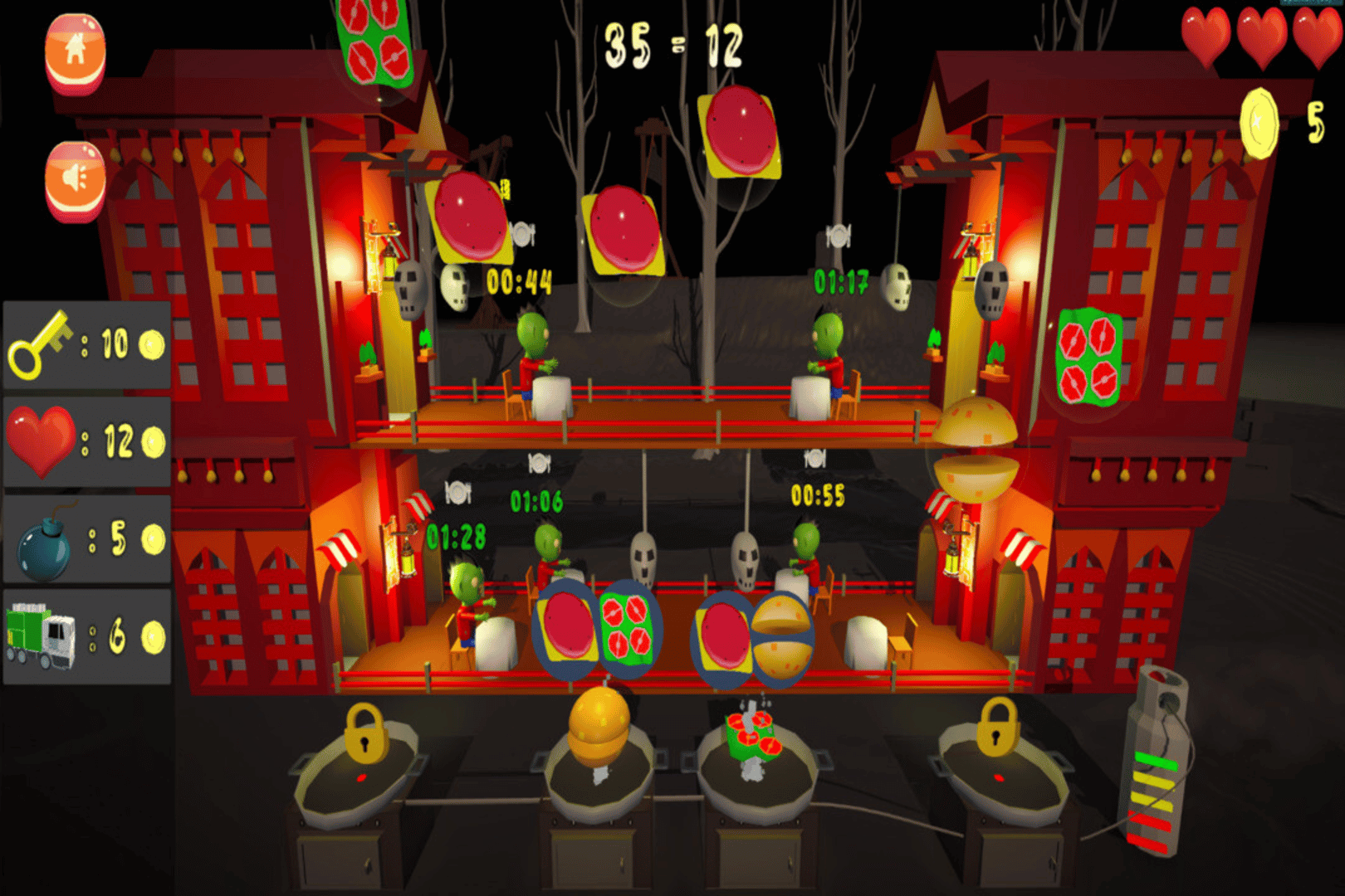 Prepare delicious meals with ingredients that fall from the sky to feed hordes of hungry zombies before their appetite turns to us.