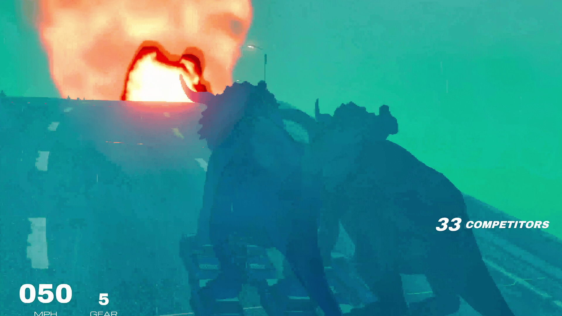 A racing game where you ride dinosaurs who skate with car-shoes.