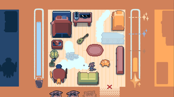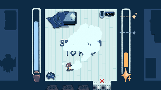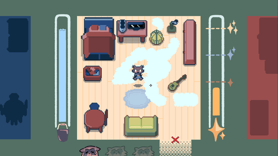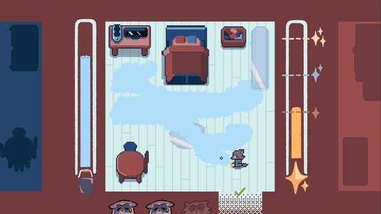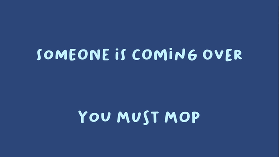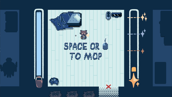 You live alone. Someone is coming over. You must mop. Play as a raccoon who has to mop up the floor in anticipation of big changes.