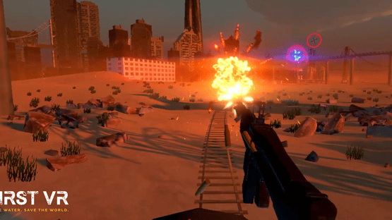 A battle rages over the last of the worlds water. Your transport train is the only hope for thousands. Protect the train - Humanity's survival depends on it!
