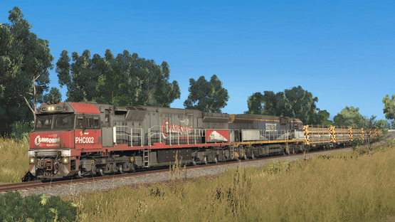 Drive the Australian C44Aci diesel locomotives, in the Crawfords (PHC class), Fletchers/SSR (FIE class), and Southern Shorthaul Railroad (CEY class) liveries, each with multiple weathering levels and custom features.