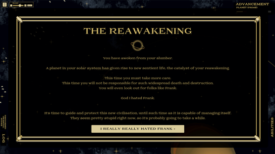 A space civilisation management game. Play as a Galactic Caretaker, controlling the growth of developing civilisations. Ensure each society reaches their galactic exploration potential….but not before they are ready.