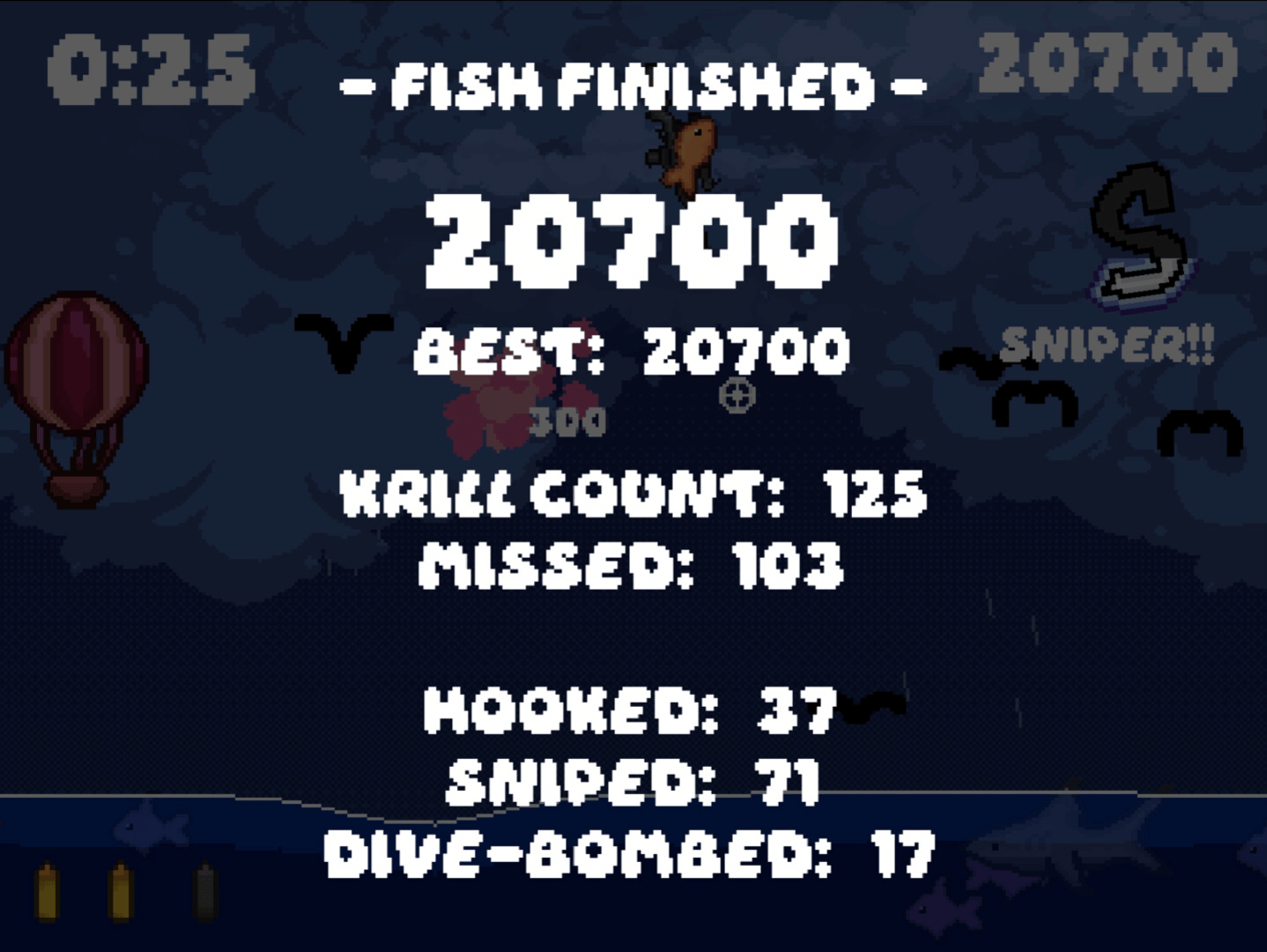 You are a fish. Armed with your grappling hook-equipped sniper rifle, go on the ultimate krilling spree in Hook Line & Sniper! In this fast-paced arcade shooter, rack up points by mastering your arsenal and maximizing your style.