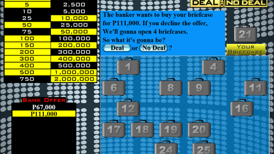 Kapamilya Deal or No Deal is a fanmade Flash game based on the Philippines version of Deal or No Deal.