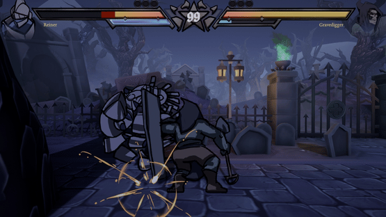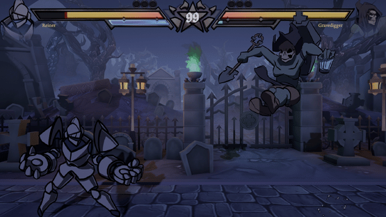 Last Rites is a hand-drawn 2D fighting game set in a dark fantasy world overrun with monsters. You play as one of 3 characters — the Gravedigger; Reilia, the Vampire; and Reiner, the Knight — all with unique movesets and playstyles. The characters each have their own set of color palettes, as well as a home-field stage with 3D environments and a corresponding music track. Play against friends at the computer or on the couch in Versus mode, go solo and battle your way through the Story and Arcade modes, or improve your skill and learn new combos in Training mode. The game was made in 9 months by Media Design School Game Art Bachelor students.