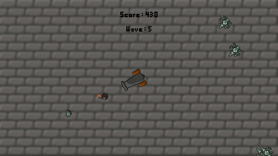 Cannoneer is a 2-dimensional, top down shooter game. You bomb planes to earn treasure and get new high scores. You can use that treasure to purchase skins and use those in game. The main gimmick of your cannon is that you only have one bomb. Every time the bomb leaves the screen you get it back. The cannon is stationary, but you can rotate in place at a set speed. The game mechanics include 30-second waves of planes that change direction and location every wave, speed increases per each wave, an explosive grenade that spawns after you shoot 15 times, and intense situations coupled with high-speed gameplay. You can track your best scores with the scores tab in the menu, and compete with your friends to get the best score. Good luck!