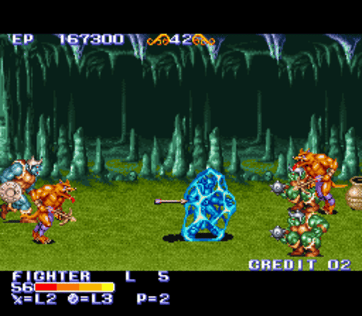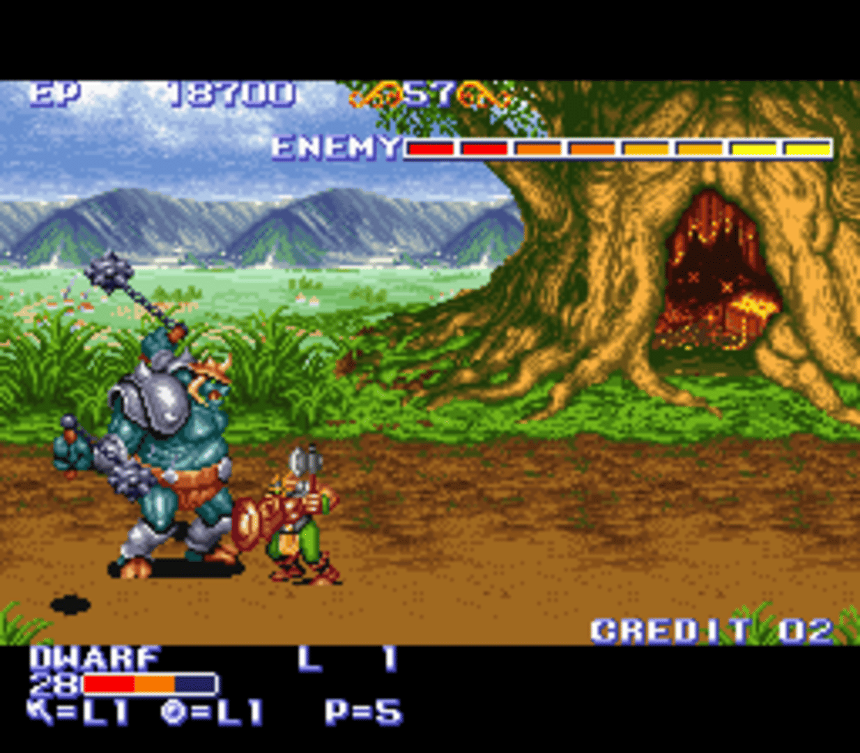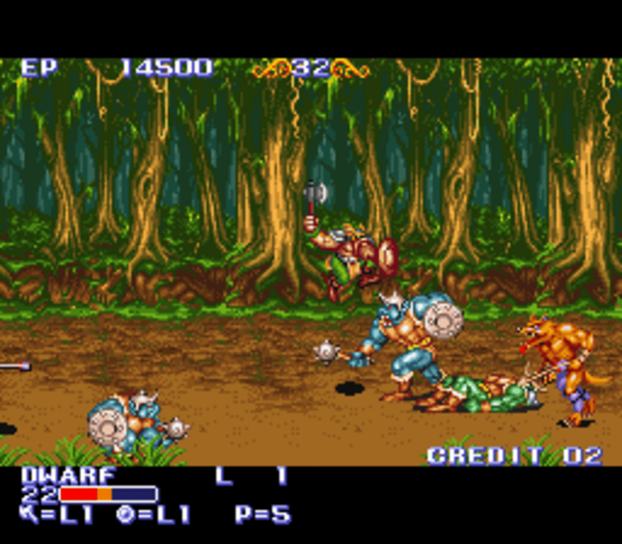 SNES Port of the arcade game with the same name. Changes it was given includes reducing the number of simultaneous players down to two, reducing the sizes of the in game sprites moderately, and it being possible to assign the magic attack and shield defense to different buttons.