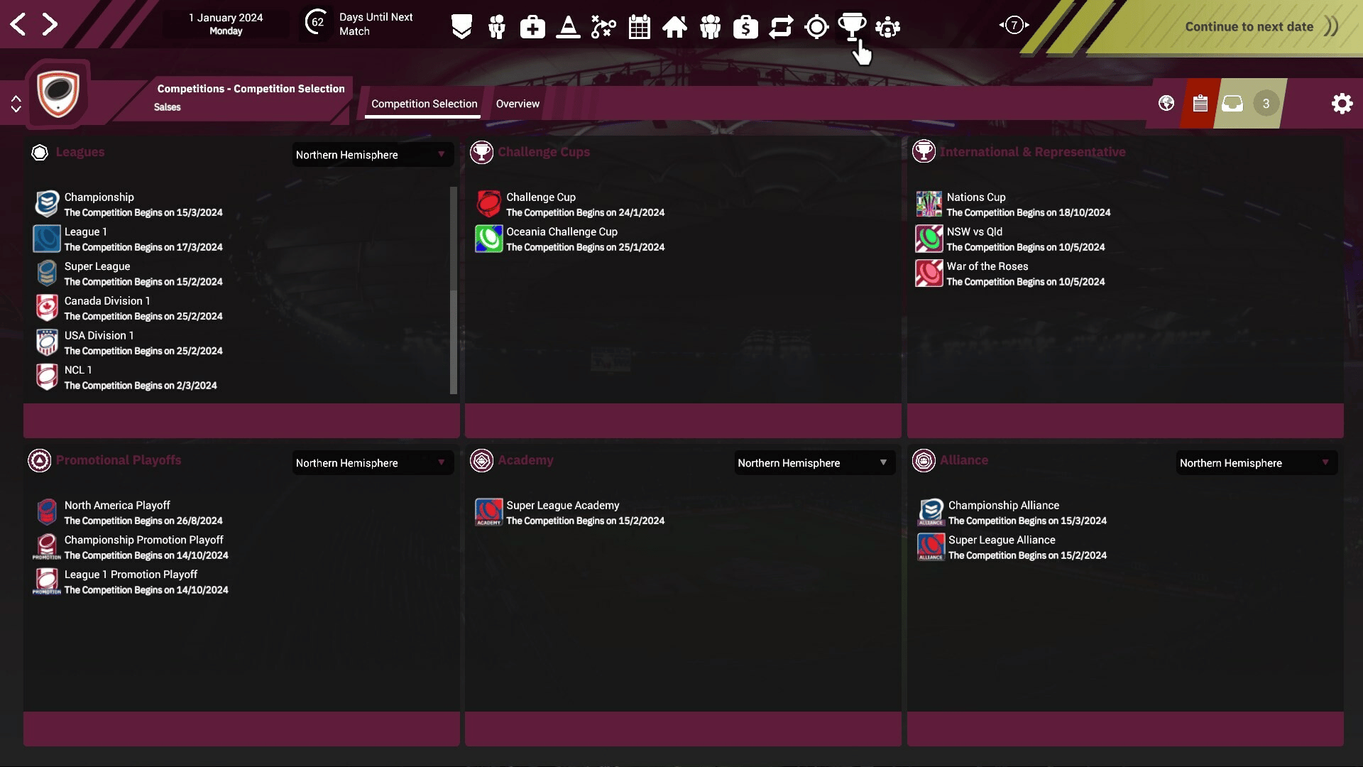 The fourth instalment of “The Number 1 Rugby League Management Game”. The biggest leagues and competitions. Take full control of managing your own Rugby League club. Training schedules, coaches, physios, scouting, finances, sponsors and more. MUCH MORE!