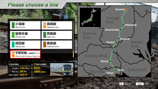 Utsunomiya Line is the nickname for trains operating on the 163.3 km long section of the Tohoku Line (between Tokyo Station and Morioka Station) between Tokyo Station and Kuroiso Station. The Utsunomiya Line has been in use since March 10, 1990, at the suggestion of the local governments along the line. In the past, many express and sleeper trains headed for Tohoku and Hokkaido used to run on the line, but now regular and rapid trains make up the majority of the schedule. Please enjoy the Utsunomiya Line DLC as you travel through the Kanto Plain, experiencing the changing landscape from Tochigi Prefecture to Tokyo, with its sprawling countryside, suburban residential areas, and buildings in the heart of the city.