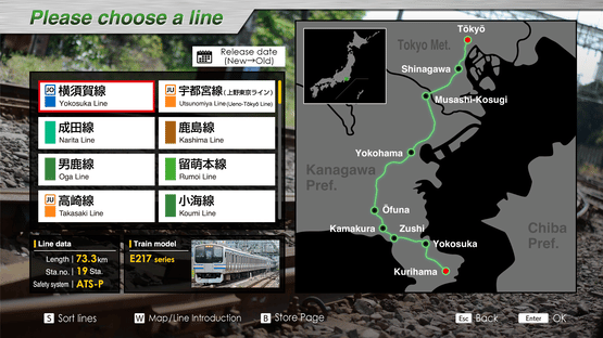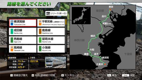 The Yokosuka Line is a 23.9 km long line connecting Kurihama Station in Yokosuka City, Kanagawa Prefecture and Ōfuna Station in Kamakura City, Kanagawa Prefecture. Although the official name of Ōfuna Station to Tōkyō Station is Tōkaido main line, trains run directly from Kurihama Station to Tōkyō Station, so the line between Kurihama and Tōkyō Stations is known as the Yokosuka Line. The train leaves Kurihama Station for Yokohama Station via Yokosuka Station, a military port town; Kamakura Station,famous for the Daibutsu statue and Tsurugaoka Hachiman Shrine; and Ōfuna Station, where the train joins the Tōkaidō Main Line. After Yokohama Station, the line separates from the Tōkaidō Main Line near Tsurumi Station and heads for Shinagawa Station while running alongside the Tōkaidō Shinkansen via Shin-Kawasaki Station where the Shin-Tsurumi Engine Works, and Musashi-kosugi Station is spead. After Shinagawa Station, the line goes underground to Tōkyō Station, its final destination. We hope you enjoy the various landscapes from the suburbs to the city and the many parallel trains.
