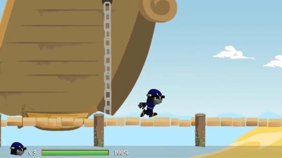 The game features a "runner" style action gameplay, where players guide the samurai through various stages, dodging obstacles and engaging in combat to reach the end of each level.