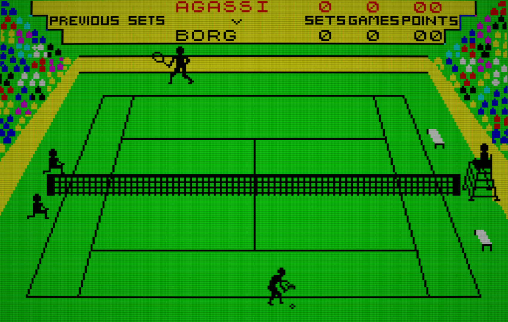 Match Point is a tennis video game released in 1984–1985 for the Amstrad CPC, Atari ST, Commodore 64, ZX Spectrum and Sinclair QL by Psion and other publishers and, under the title Tournament Tennis, on ColecoVision , Commodore 64 and MS-DOS by Imagic. It was also published for Thomson TO7, Thomson MO6 and Thomson MO5 under the title Super Tennis. Some editions for Atari ST, Commodore 64 (on cartridge) and DOS used the simple title Tennis.