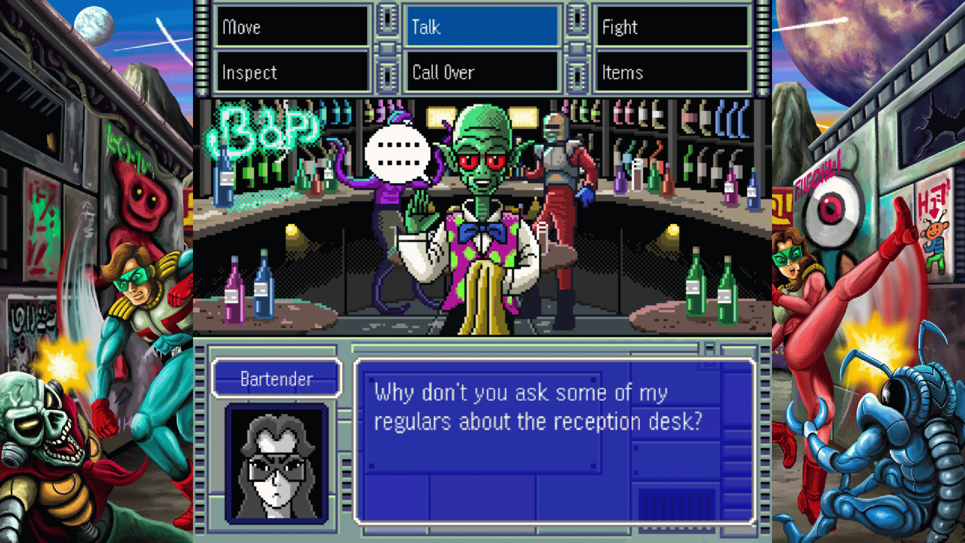 OMEGA 6 The Triangle Stars is an adventure game with 16-bit styling, based on the manga by former Nintendo art director, Takaya Imamura.