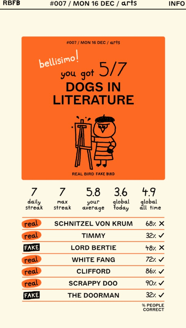 Sort the real birds from the fake birds, with new topics daily.