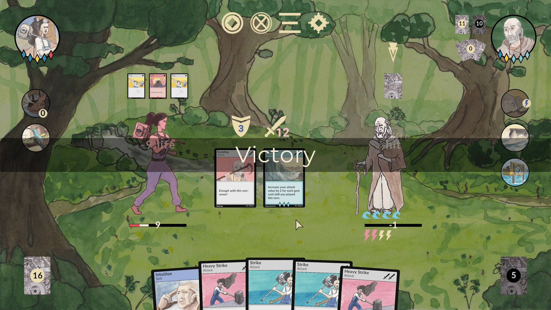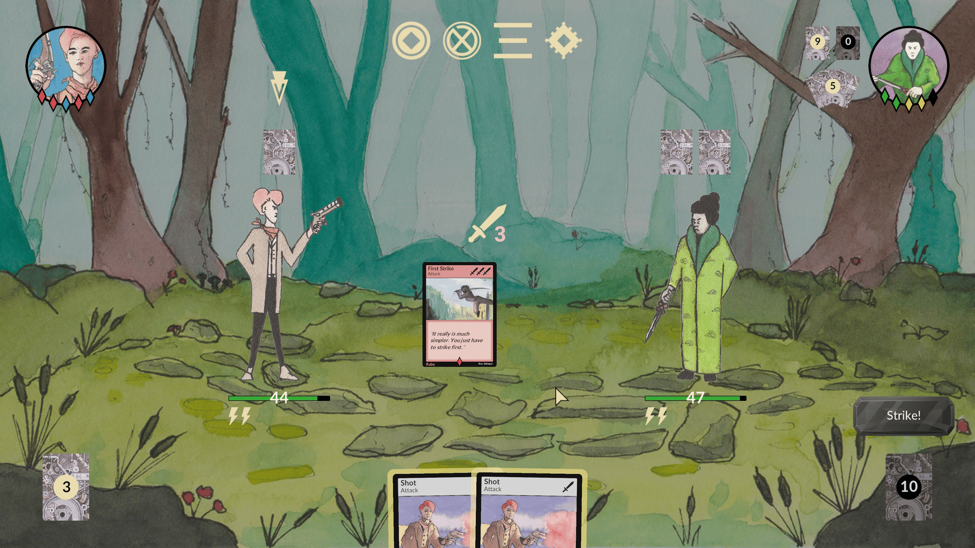 In this competitive deckbuilding game you are a Gemwielder, capable of controlling an ancient artifact weapon. Socket mystical gems to acquire powerful abilities and prevail in a duel against another Gemwielder.