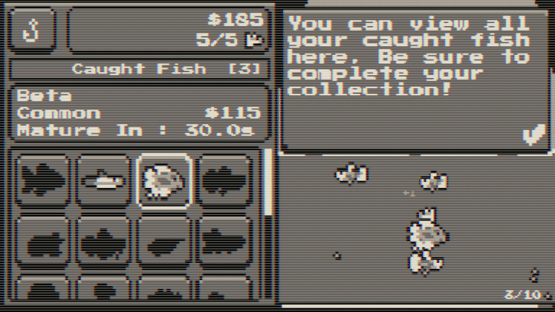 Grow fish with a gashapon twist in this bite-sized idler. Feed, nurture, and watch as fisher people reel in mature catches, earning money to upgrade things like feeding, growth, and fishing speeds for even faster profits.