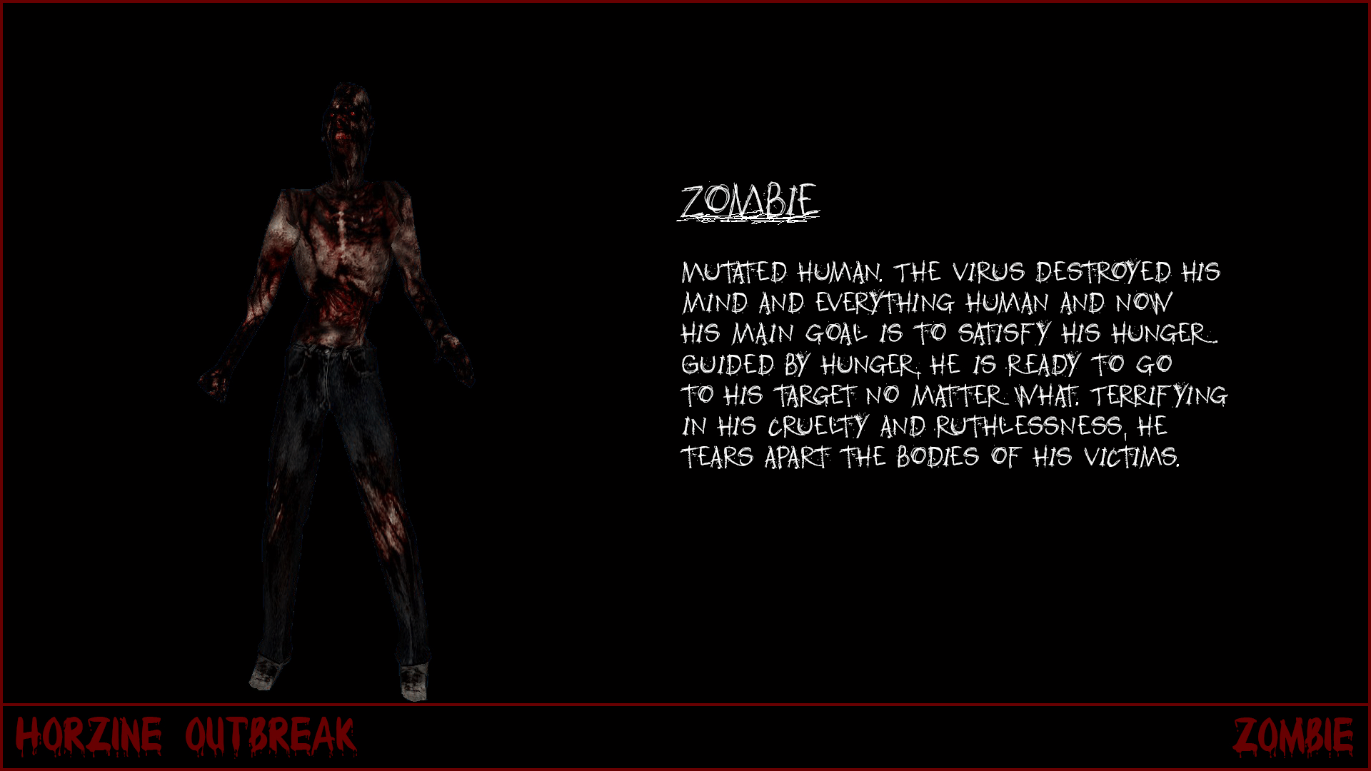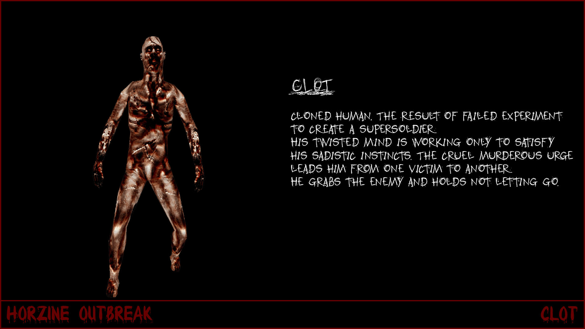 Horzine Outbreak is based on original Killing Floor mod (KFMod) v1.0 for Unreal Tournament 2004 by Alex Quick and tell a story about incident in Horzine Biotech, currently in progress and being made by the last version of Xash3D + XashXT.