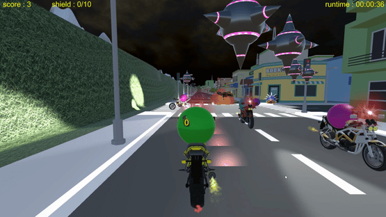 The game is designed to drive a motorcycle and kill or destroy targets along city roads, occupying the Goal, allowing the game player to win. You need more than 100 points and 10 shields to win.