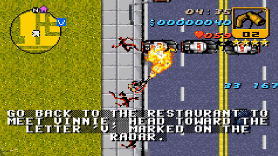 Grand Theft Auto Advance is a handheld console game developed by Digital Eclipse, published by Rockstar Games, and released on October 26, 2004 for the Game Boy Advance. It is the only Grand Theft Auto game to not be developed by a Rockstar studio (formerly DMA Design). The game is played from a top-down perspective; this view angle was seen on the first two games in the series, Grand Theft Auto and Grand Theft Auto 2, but vehicle-based side-missions (such as "Vigilante" and "Paramedic"), the heads-up display and a large majority of the weapons, first introduced in the three-dimensional counterparts, have also been included. Unlike previous top-down Grand Theft Auto games, vehicles can now flip over. It is the first game from the Grand Theft Auto series which got a 16+ rating from PEGI and an M rating (recommended for mature audiences though any age is still allowed access) from the Australian Classification Board. The game was released on the same day as the North American release of Grand Theft Auto: San Andreas.