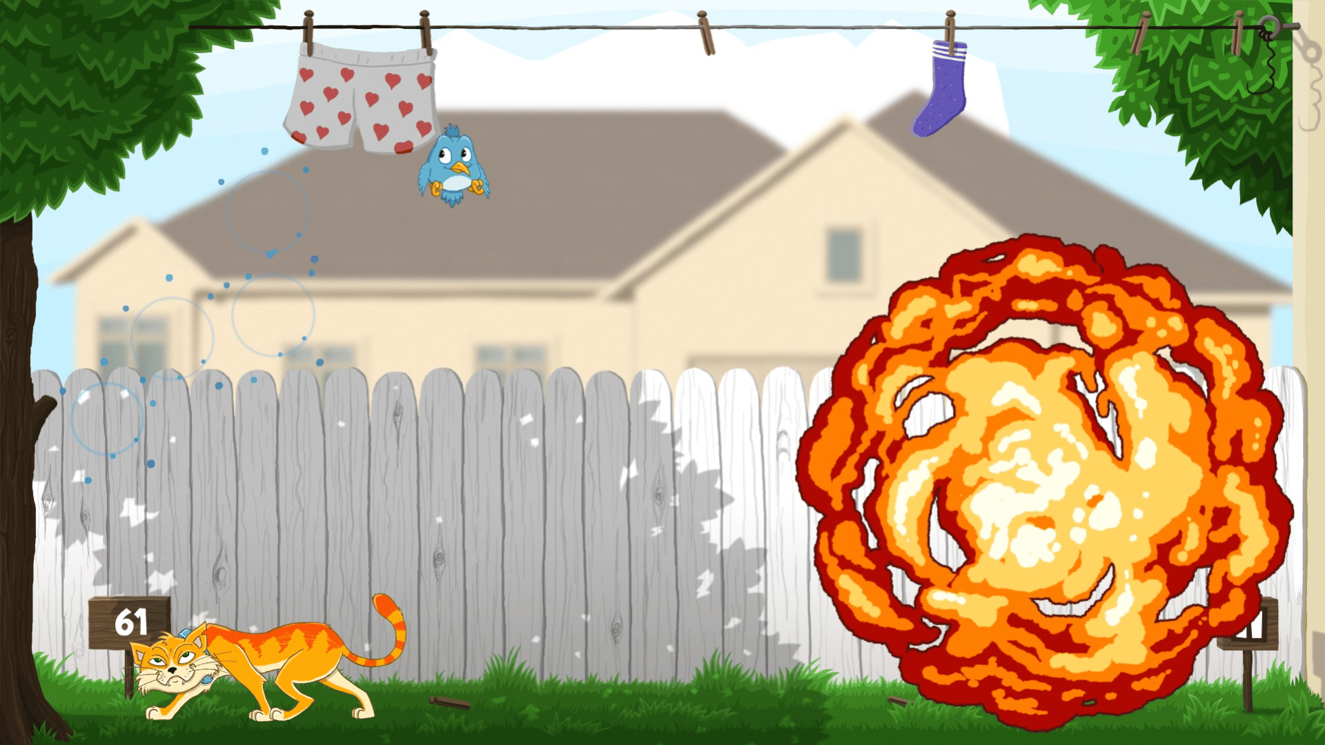 Keep the bird safe for as long as you can while a rogue housecat is trying to catch it! The longer you hold out, the more desperate the cat becomes. He’ll take extreme measures like throwing bombs, slashing with scythes and transforming into a wild tornado-frenzy! Increase your highscore, collect feathers and unlock new birds and themes! Do you think you have what it takes to keep the bird from becoming the Cat’s next Catch?