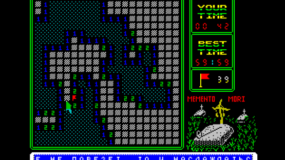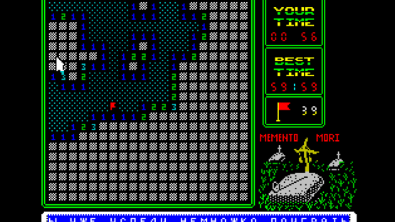 On a grid, the player clicks in a cell and hopes that it is not occupied with a mine. If it isn't, that cell is filled with a number, which indicates how many mines there are in adjacent cells. Using logical thinking, looking at the relations between different number cells, the player can conclude which cells contain a mine and mark them as such. Once all cells are revealed, the player progresses to the next minefield.