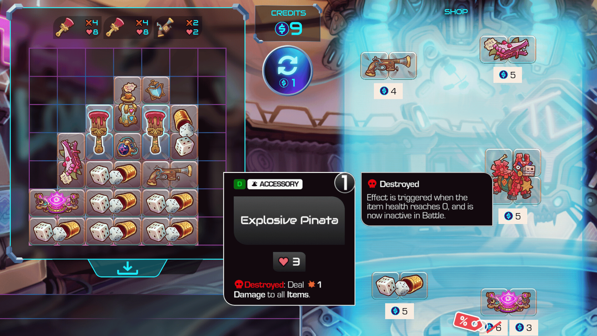 Total Loadout is a PvP inventory management auto battler where heroes and villains from across space and time clash with powerful weapons! Choose your Celebrity with special abilities and items, then outwit opponents turn by turn by arranging your inventory tactically to build an unbeatable Loadout.