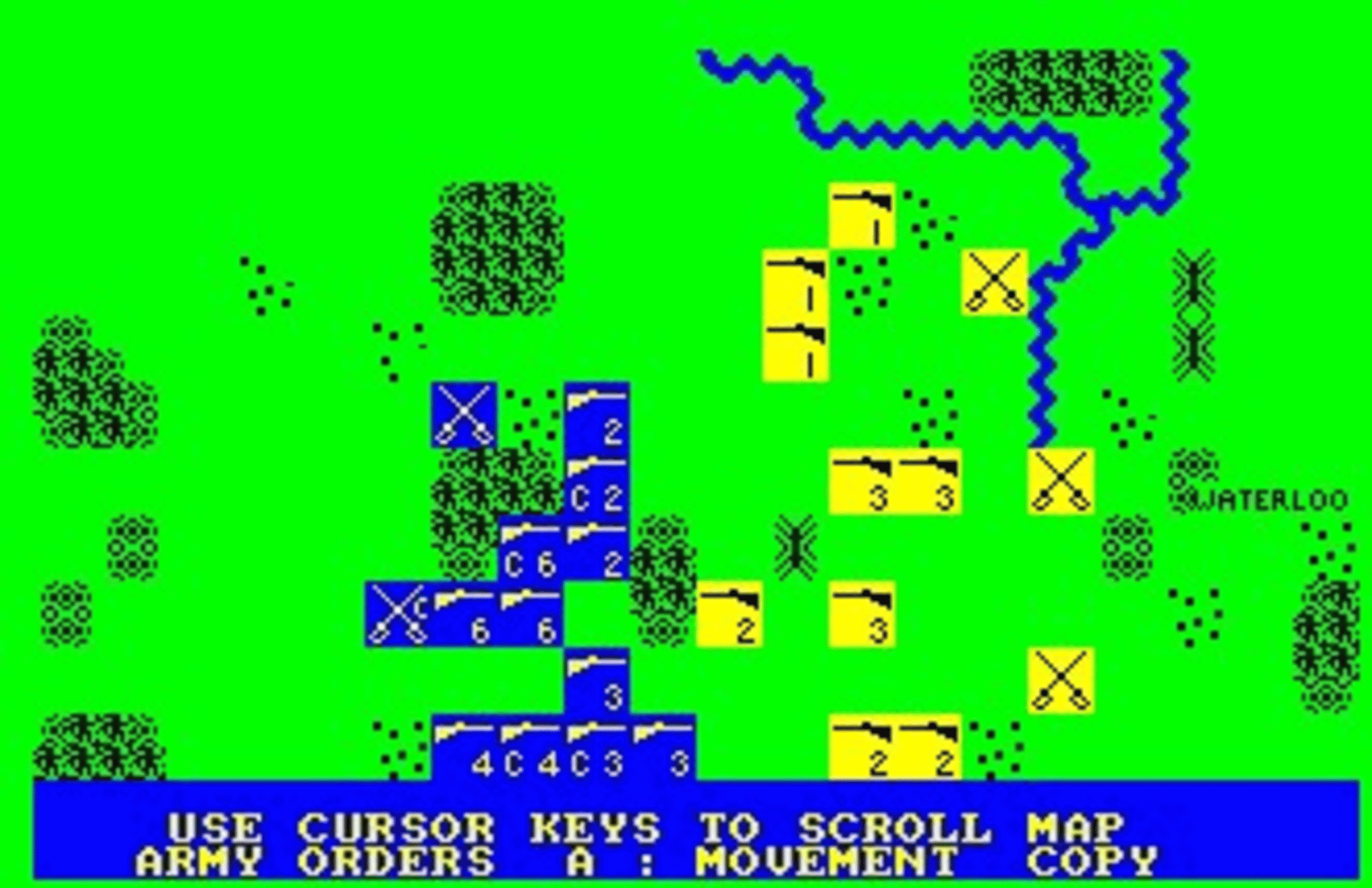 This was the first in Lothlorien's Warmaster series of Strategy wargames and re-creates the epic battle in 1815 when Napoleon met his final defeat at the hands of a combined British, Dutch and Prussian army at Waterloo. In the game, you command Napoleon's forces against the combined Anglo-Dutch army of Wellington (controlled by the computer). The computer also controls the Prussian forces, which arrive at a later phase of the game. Your objective is to rout the Anglo-Dutch army at Waterloo, while leaving enough men to deal with the Prussian threat coming from Ligny. Infantry and cavalry units are available for both sides (no artillery), each with varying degrees of strength and morale. Terrain effects play an important role in the effectiveness of units - the Anglo-Dutch forces, for example, occupy ridges and farmhouses which increase their defensive capabilities.