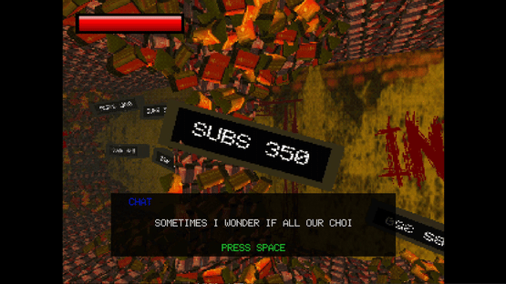 A short horror game of a few minutes, with elements of combat and fear. You play as a streamer known as "Gargamelovo let's play šílenství" He always felt like an outsider, whether at school or at work. So he started talking to chat.