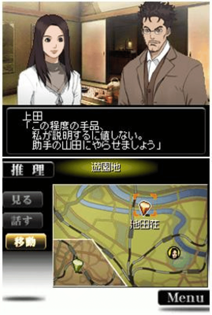 A series of mysterious disappearances occur in an old mansion in a mountain village. Based on the Japanese TV drama TRICK, the player can investigate as either aspiring magician Naoko or skeptical physicist Ueda, working together to collect evidence and testimony from witnesses, track down the real culprit, and uncover the hidden 'trick' to the supposedly supernatural happenings.