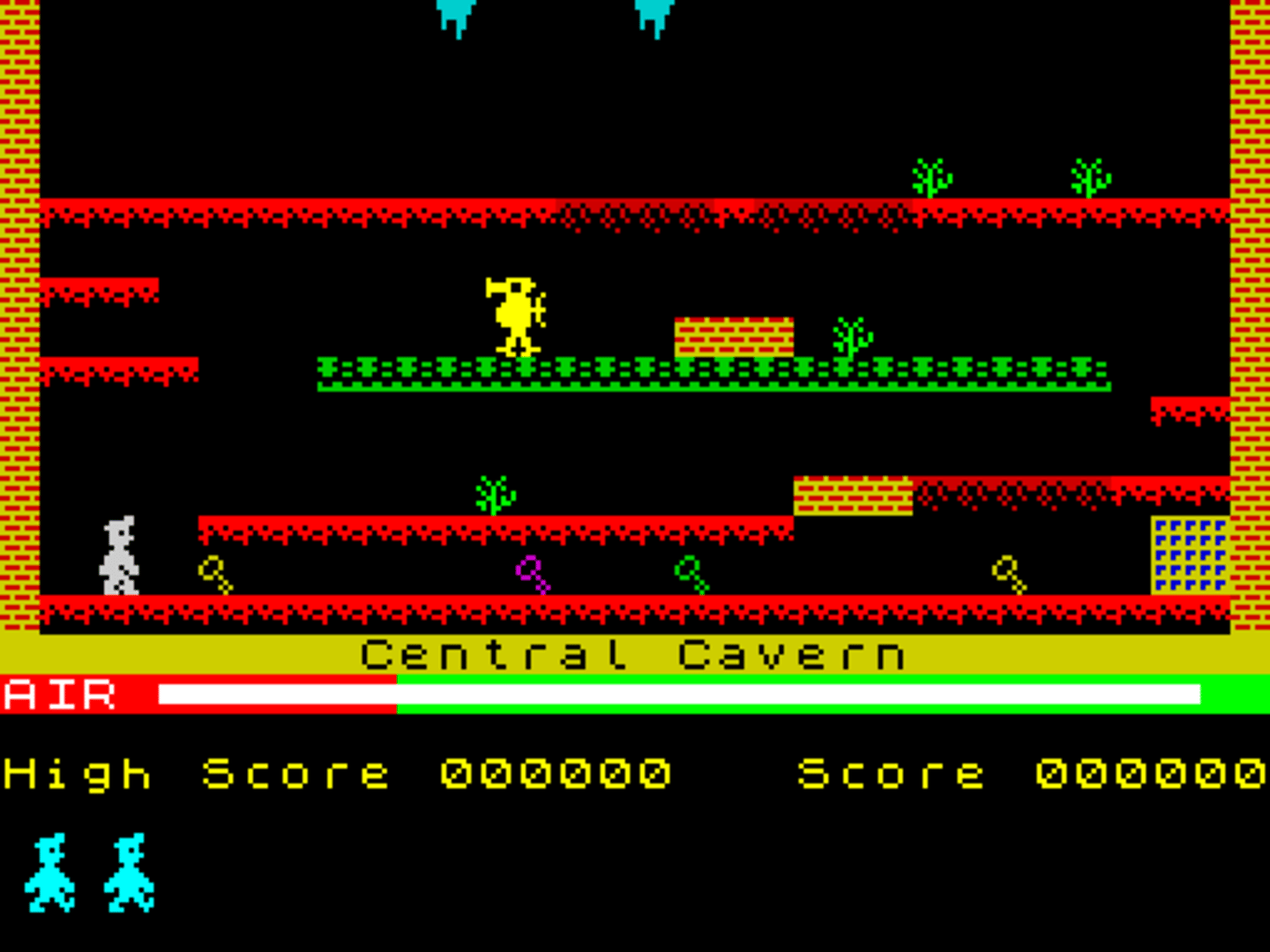Manic Miner - Super Pre-School Edition is MM hacked so that you can walk straight into the portal in each cavern. In fact, the player has to move quickly in "Solar Power Generator" and "The Final Barrier", or else they will lose lives after vertical guardians collide with room elements, and in "The Sixteenth Cavern" inaction will get the payer killed by a horizontal guardian. The game was an entry in the comp.sys.sinclair Crap Games Competition 1999.