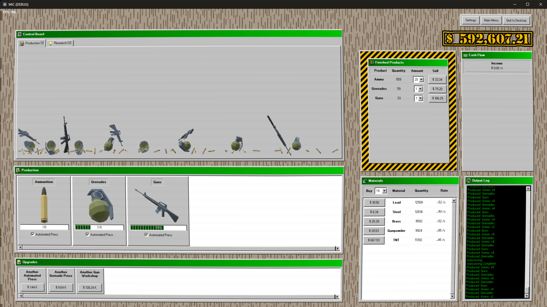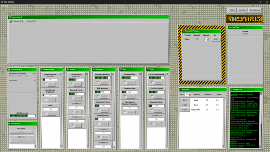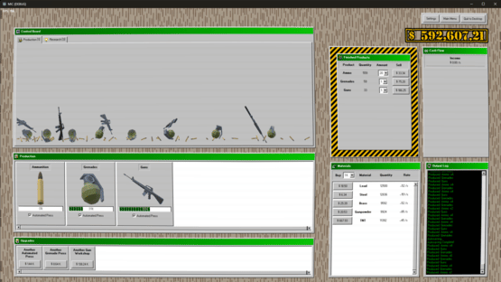 Make weapons, make money. Start your own military industrial complex enterprise! Begin by making bullets by hand, then with machines, then acquire entire factories. Expand into making guns, tanks, planes, and even nukes. Research new products, faster and cheaper ways to make them, and better methods of making money. Enter the stock market to raise capital, buyout rival companies, or perform market manipulation. Lobby the government for fewer regulations, better contracts, and more demand for your products. Turn the entire economy into a weapons making machine, making you ludicrous amounts of money.