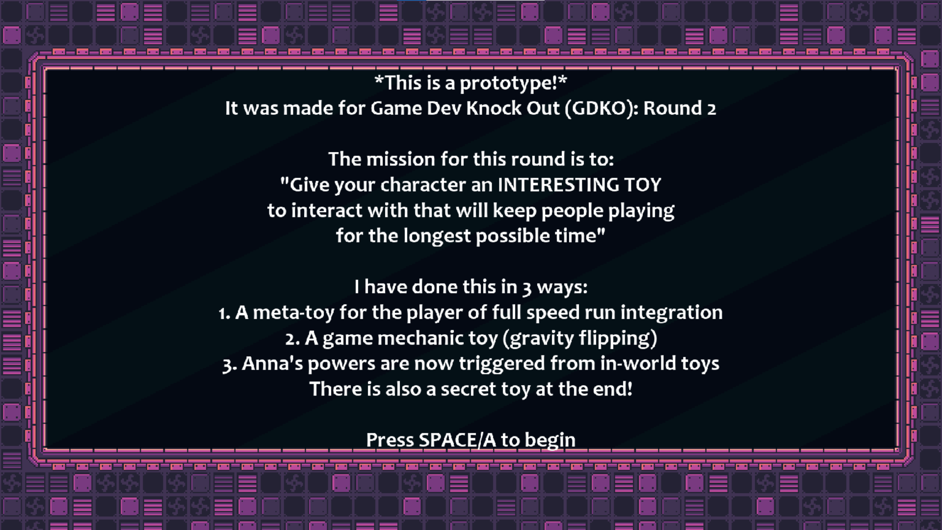 You are a little girl with psychic abilities triggered by her childhood toys. You have been studied and contained your whole life, but recently the doctors have stopped checking in on you. Something must have gone wrong. To investigate you have just broken out of the room where you have spent your entire life. Your psychic powers are great, but be careful not to damage the life support system carried on the drone floating around you!