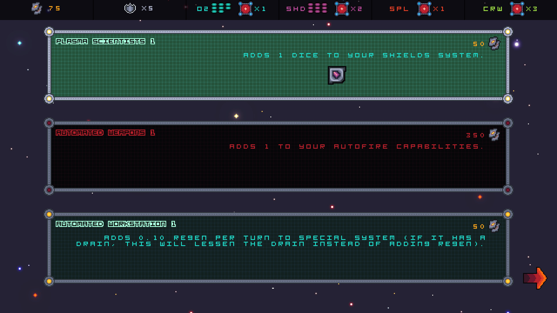 Roam the galaxy, destroy enemy ships, and encounter special events as you explore! Make smart decisions with your dice rolls in order to survive. Buy upgrades at Galactic Bazaars, unlock new ships, and manage your fate in the cold expanse of space.