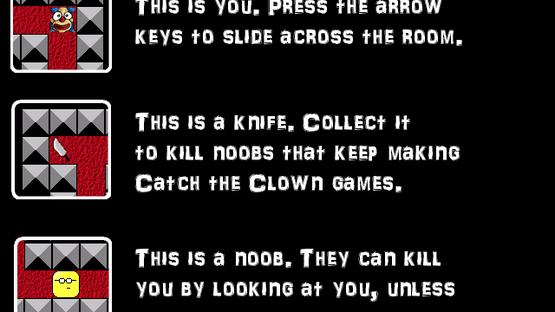 A parody puzzle game made for the GMC Jam #3, where the author interpreted the theme "Live" as "the legend will live on." After completing the first level (modelled after the infamous Catch the Clown tutorial for Game Maker 7), you slide around to defeat all the noobs posting CTC clones on the YoYo Games portal.