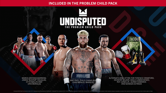 Undisputed brings you The Problem Child Pack, featuring Jake ‘El Gallo De Dorado' Paul, as well as six other epic fighters including Zhilei Zhang, Juan Manuel Márquez, Erik Morales, Marco Antonio Barrera, James ‘Buster' Douglas, and Otto Wallin, along with six new sets of ring attire for the current roster.