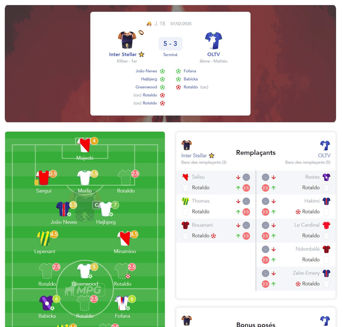 The reference Fantasy football in France with over 2 million users. Challenge a friend in a 1v1 each weekend and win... if your players perform well in real life (goals or good ratings out of 10). You can build an ambitious squad thanks to the initial auction phase against your opponents (€500m to spend ;) Use your bonuses to turn the tide of your match. Earn rewards in parallel if you excel in special tournaments. And get your best jokes ready, it’s going to be fun.