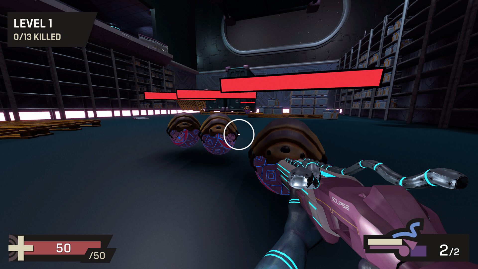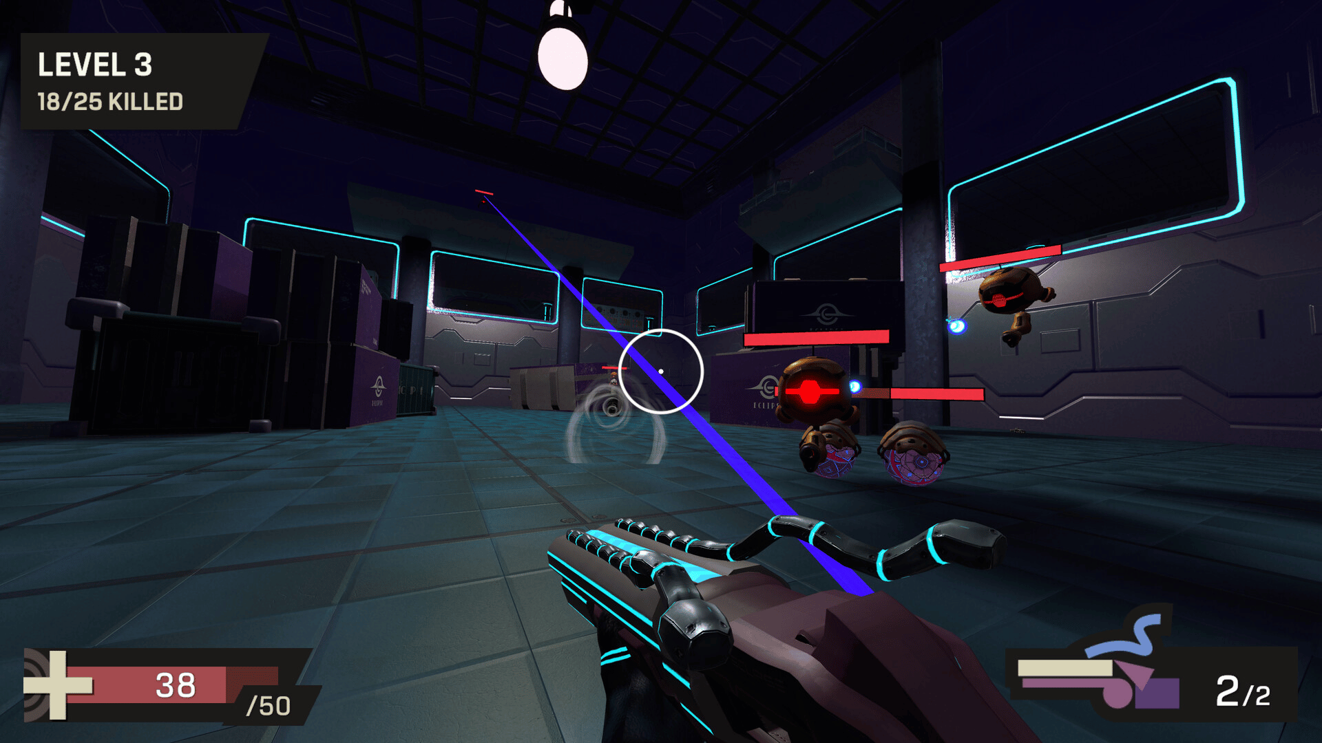 A fast-paced first-person shooter where you master gun recoil to leap across platforms, battle various enemies, and upgrade your weapon to escape an overrun space station.
