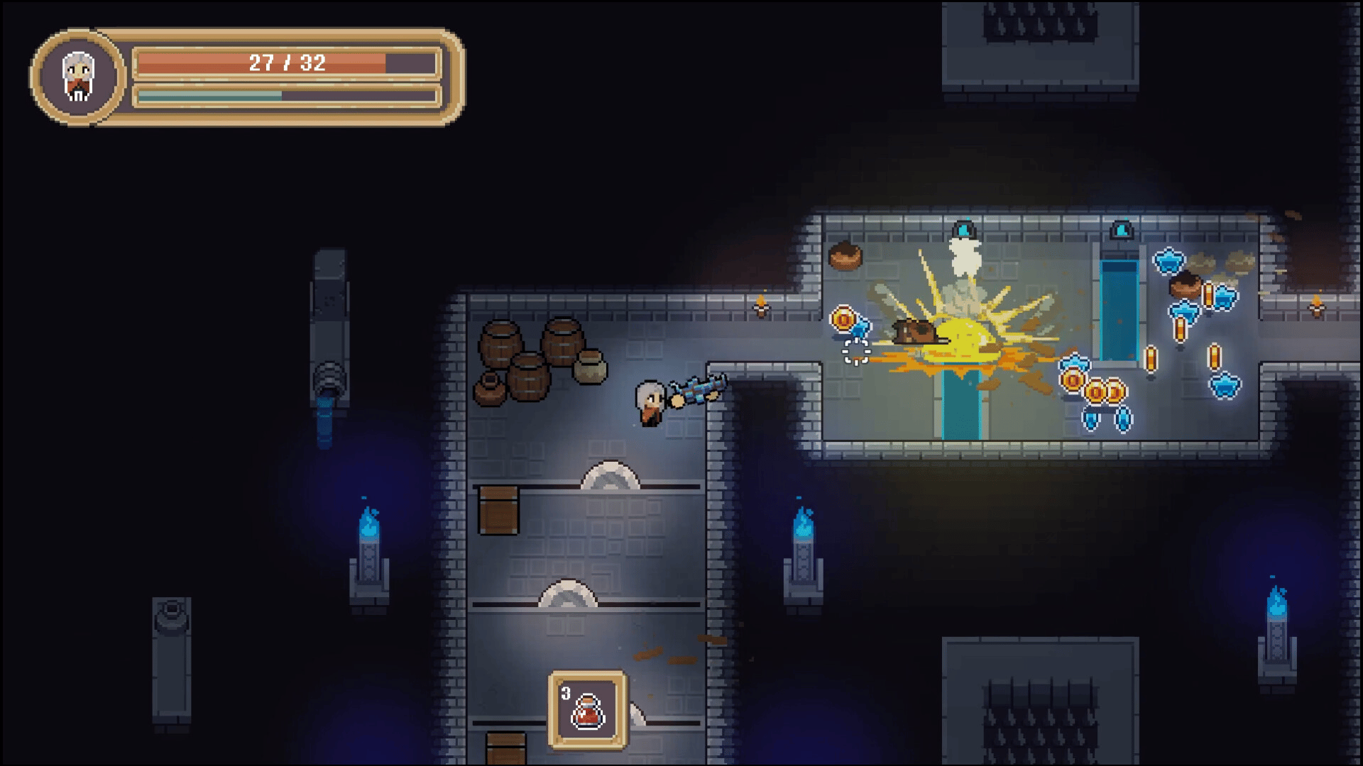 As Cordelia, battle through dynamic dungeons with blasters and magic. Face escalating enemies, dodge traps, and collect powerful loot in fast-paced, randomized arcade shooter runs, each offering fresh challenges.