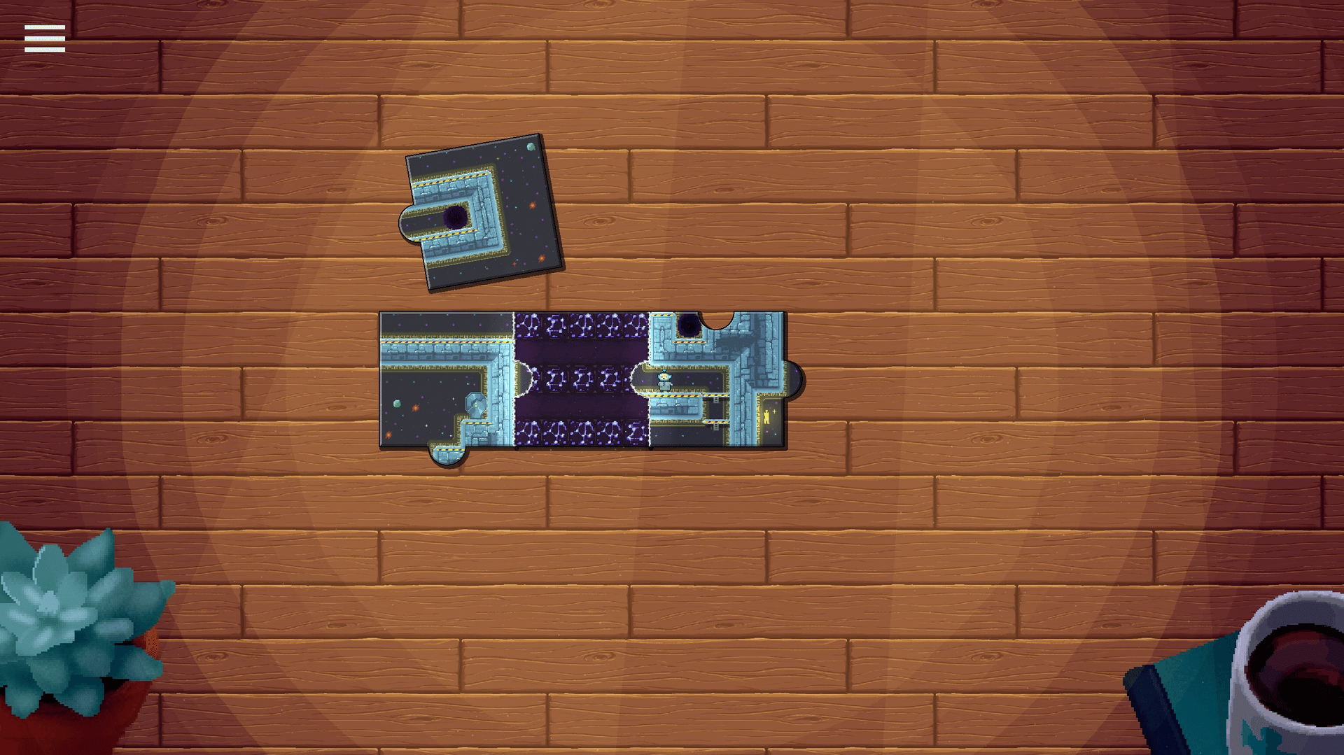 Piece by Piece is a LITERAL puzzle platformer where each level is fragmented into puzzle piece-shaped fragments. Assemble and unassemble the pieces to guide your character to the doorway and reach the next level!