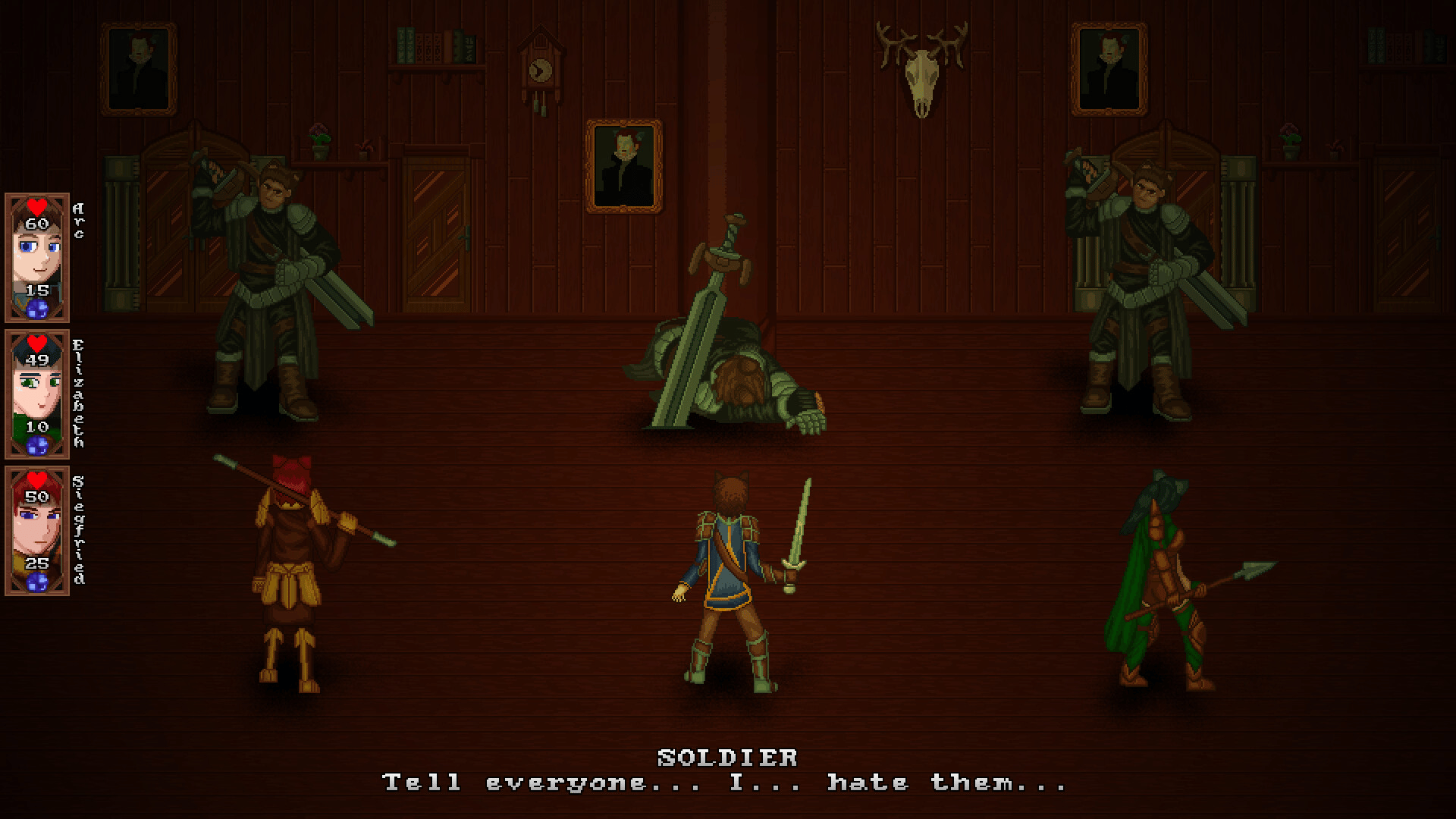 This is a comedy RPG/Visual Novel hybrid which does not follow conventional rules. Fight monsters for a meager paycheck, fight trained mercs who steal said paycheck (Like the bullies at lunch!), watch your family starve, watch the news to see how badly you screwed up, get yelled at for not tipping.