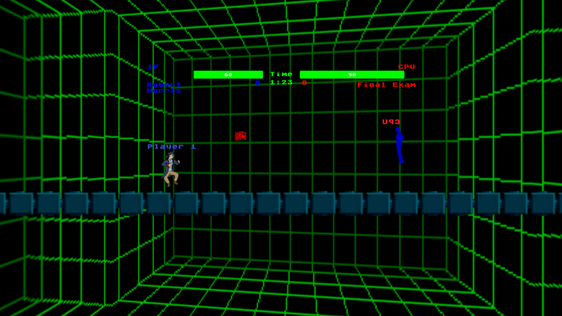 Colonial Combat is the new, exciting, retro-styled, 1–vs–1, 2D, indie Unity3D fighting game for Windows 7 (and newer) PCs! The game is a fictional, comedic, non-violent fighting game with tongue-in-cheek satire and in-jokes about college life and surviving at a certain university, and based (loosely) on real campus settings as levels, and archetypal student types and figureheads as characters. The university’s mascot is Robert Morris (the financier of the American Revolution), and the football team is the “Colonial Crazies”, hence the title of the game.