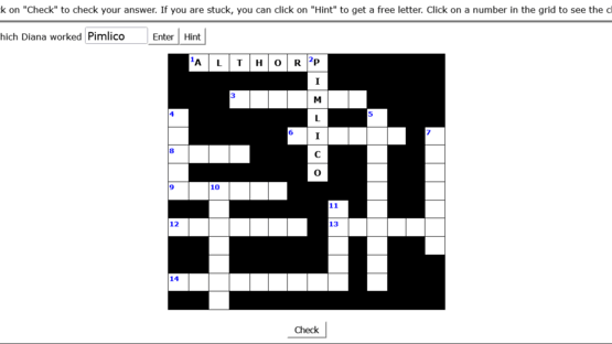 Princess Diana Crosswords No.1 is a crossword game hosted on Princess-Diana.co.uk based around the life of Princess Diana, made in her memory.