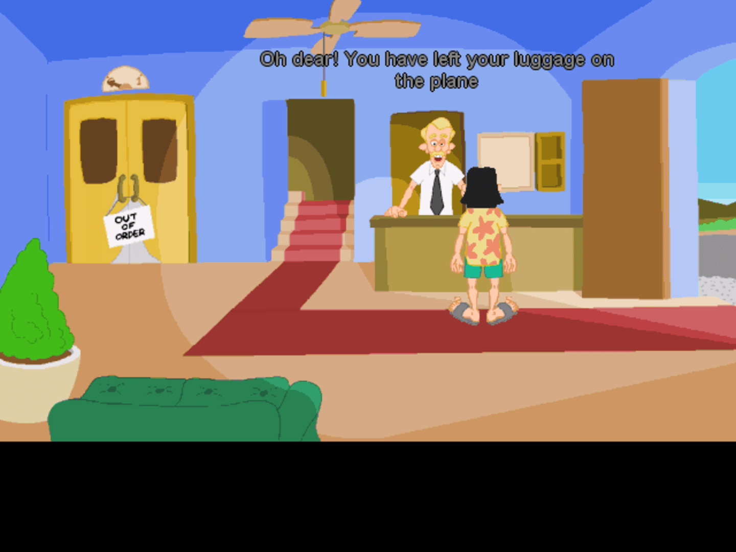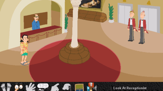 Inside a box with cereal, Agapito finds a voucher for a trip for two to an island in the Pacific Ocean, somewhere between Madagascar and the Antilles. He invites his friend Susan to accompany him, but he loses her on the airport, probably to a "tall blond fellow." He ends up in a cargo plane next to a nose picking gorilla. On the island he will stay in the Paradise Hotel as its only quest. Exploring of the island is done by foot, until he manages to repair an impressive sports car (a Deux Chevaux). From then on the player is able to explore the island and its beaches by using a map. Agapito's Crazy Adventure is a 3rd person, inventory based humorous adventure. There's no real quest, but only a series of situations that have to be solved. Only in the final stage of the game Agapito meets a new girlfriend and some tasks have to be completed before he can have diner with her.